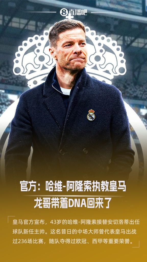 注入DNA!官方:哈维-阿隆索担任皇马主帅&签约3年,明天正式亮相