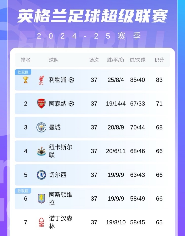 05月21日讯 英超第37轮曼城3-1击败伯恩茅斯,英超末轮前的比赛全部结束。