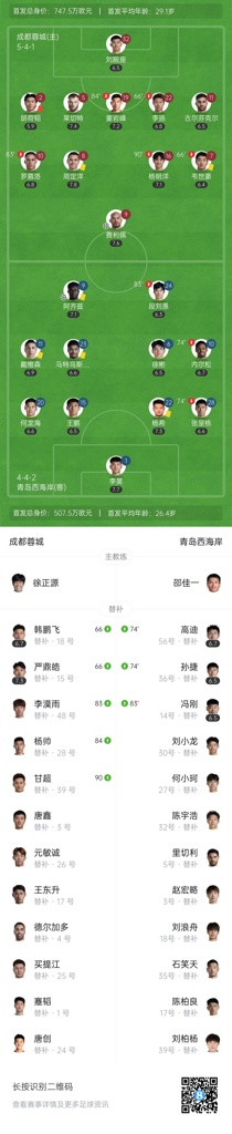 第83分钟,青岛西海岸两连击,孙捷补射破门但越位了。↓